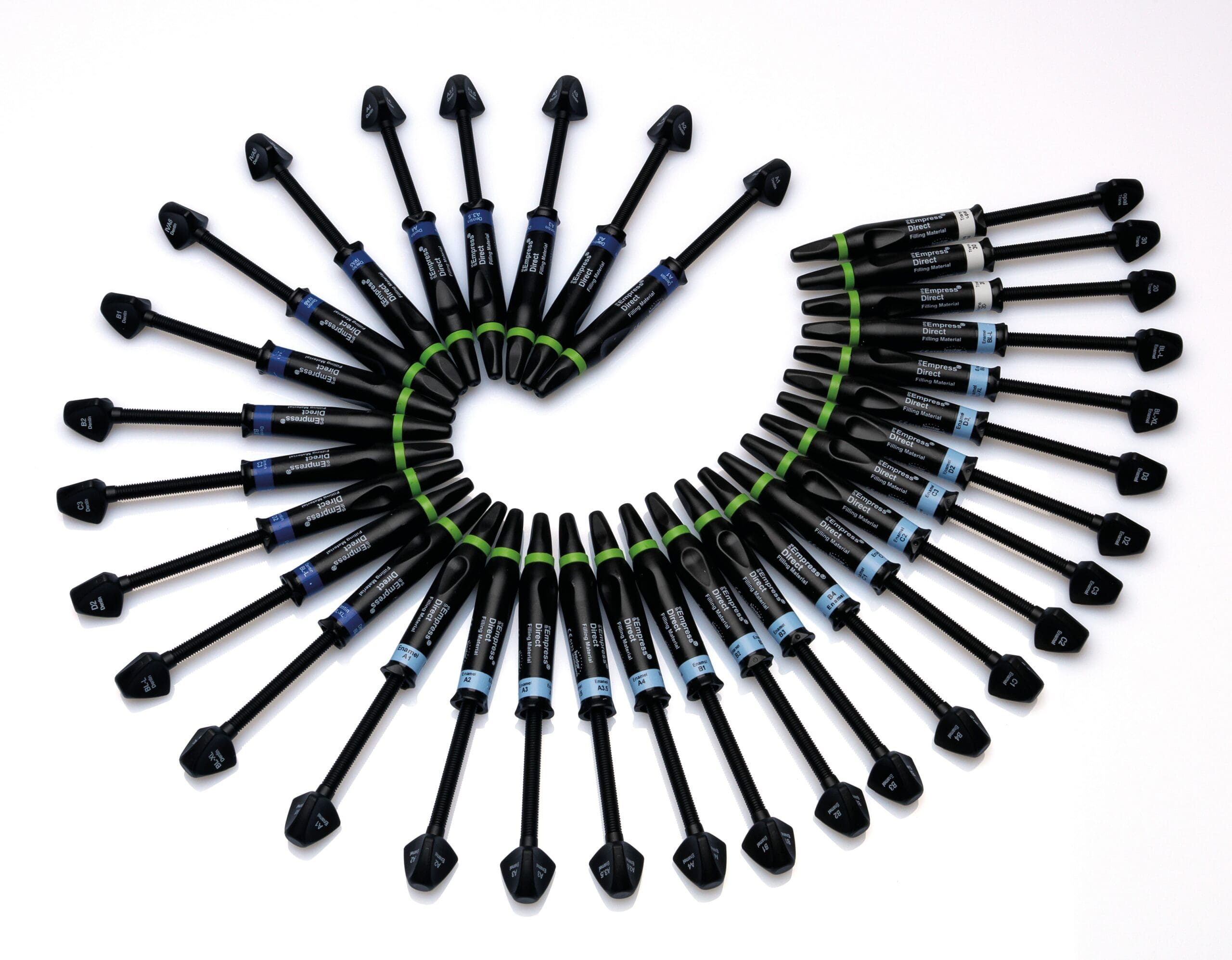 Eίναι μια νανο-υβριδική ρητίνη, υψηλής αισθητικής, για άμεσες αποκαταστάσεις. Συνδυάζει την αισθητική των κεραμικών με τα πλεονεκτήματα εφαρμογής των πολυμερών. Eχει σχεδιαστεί για να καλύψει εξαιρετικά υψηλές αισθητικές απαιτήσεις. Πλεονεκτήματα: • Υψηλή επιφανειακή στιλπνότητα • Εξαιρετικές ιδιότητες στίλβωσης • Φυσικός φθορισμός • Καλή ακτινοσκιερότητα Αποχρώσεις Dentin: A1, A2, A3, A3.5, A4, IVA5, IVA6, B1, B2, C3, D2, Bleach L, Bleach XL Enamel: A1, A2, A3, A3.5, A4, B1, B2, B3, B4, C1, C2, C3, D2, D3, Bleach L, Bleach XL Transluscent: Trans 20, Trans 30, Trans Opal