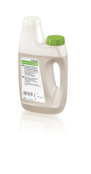 Συμπυκνωμένο διάλυμα για ταχεία και αποτελεσματική δράση καθαρισμού και απολύμανσης. Φόρμουλα που βασίζεται στα παράγωγα αμμωνίου, χωρίς αλδεΰδες, άρωμα και χρώμα. Άριστη συμβατότητα υλικών. Ιδανικό για χρήση, τόσο σε μικρές, όσο και σε μεγάλες επιφάνειες, σε δημόσιους χώρους, κλινικές, χειρουργεία και εντατικές μονάδες